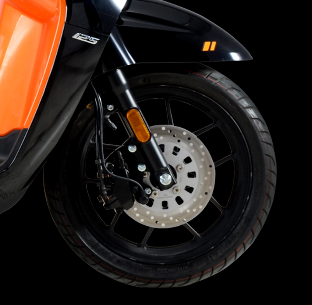 前后碟剎+CBS(高配版) 高配版配備的前后雙活塞式碟剎同時配備CBS聯動制動,高效穩定,駕駛 更加安全可靠。
